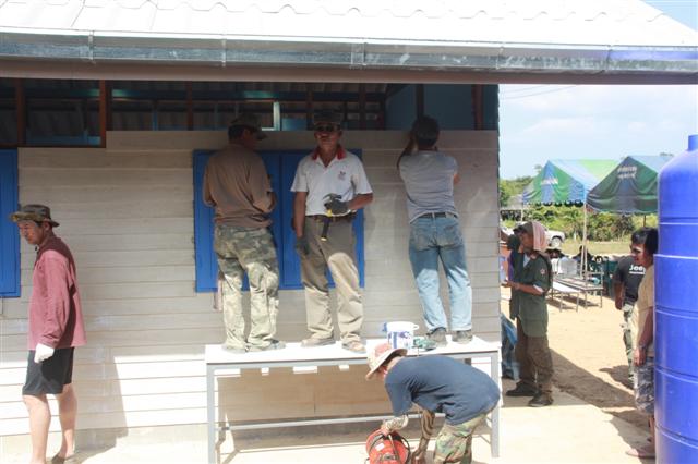 พอมาถึงก็ไม่รอช้าละ..แบ่งทีมลุยเลย..ใครไคร่ตัดก็ตัด ใครไคร่เจาะก็เจาะ ใครไคร่ตอกก็ตอก ใครไคทาสีก็เชิญ....
