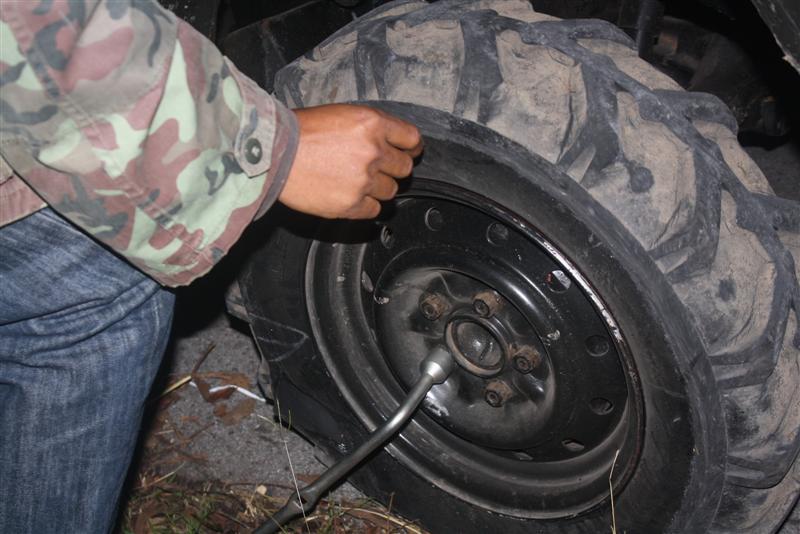 ด้วยความที่ว่ามืดก็มืดเจ้าเกมส์หันไปเห็นก้อนดำๆขนาดเท่ากับก้อนหิน ที่อยู่ริมถนนก็นึกว่าชุดแรกใช้หินก้อนนี้หนุนรถ รีบอุ้มขึ้นมาอย่างเต็มๆทันที