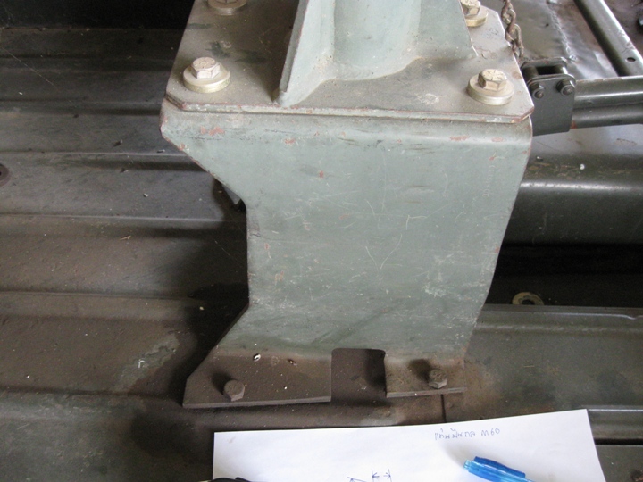 สำหรับแท่นปืนกล M60 จะมีฐานรองแท่น เหล็กหนาประมาณ 5 มิล และมีช่องแหว่ง..สำหรับคล่อมสันกระดูกพื้นรถ...น๊อตยึด 4 มุม (เบอร์ 17)