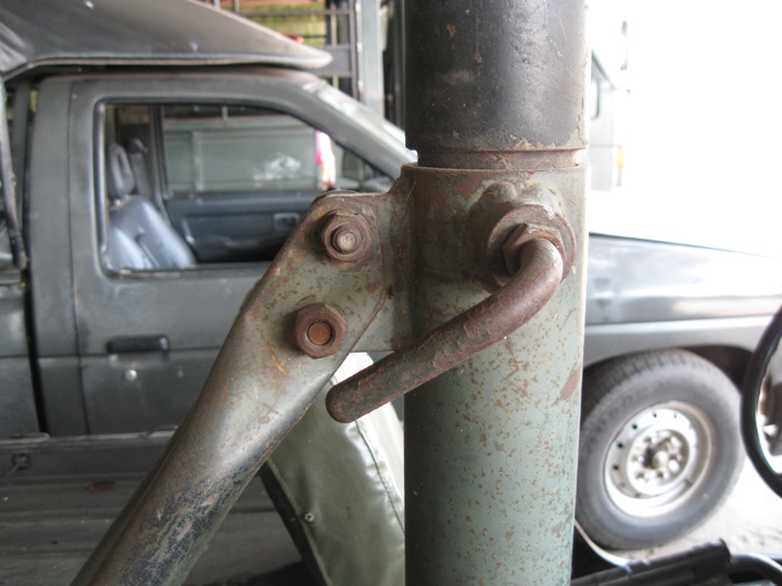 ช่วงระหว่างกลางเสาจะมีหู สำหรับยึดก้านยันเสา ส่วนตัวเสาท่อนบนสามารถหมุนได้ และมีตัวหางปลาขันล็อคไว้
