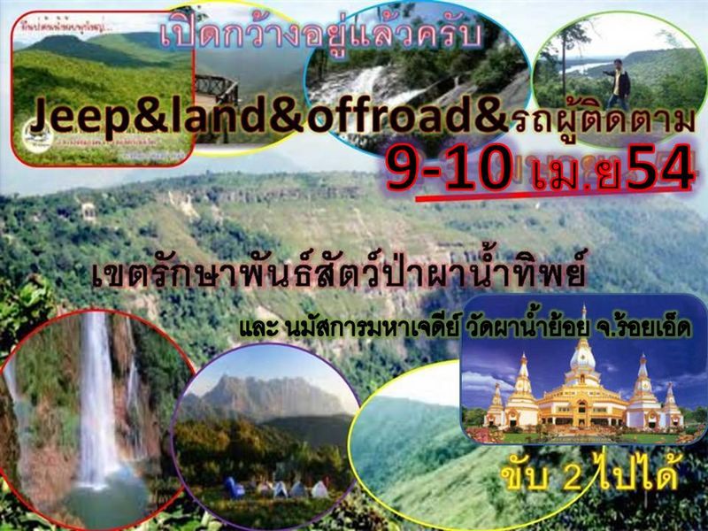 ทริป ..บำเพ็ญประโยชน์ท่องเที่ยวเชิงอนุรักษ์ 9-10 เม.ย.54 ที่เขตรักษาพันธุ์สัตว์ป่าผาน้ำทิพย์ อ.หนองพอก จ.ร้อยเอ็ด(งานนี้ร่วมงานบวช นายตุ๋ย4x4 เด็กเสฯ..(เสลภูมิ) ด้วย ในวันที่ 9 เมษายน 54 และ ยินดีด้วยที่ได้รับมอบผ้าไตรจีวร จาก