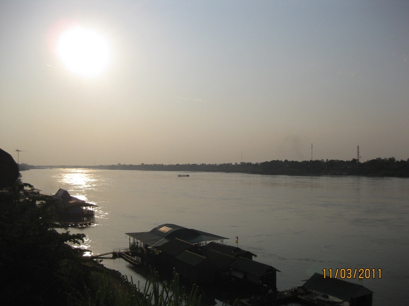 สวัสดียามเย็นครับพี่น้อง หนองคายปัจจุบันมีความเปลี่ยนแปลงไปมาก น้ำโขงซึ่งเป็นเส้นเลือดใหญ่ เริ่มลดลงอย่างรวดเร็วอย่างหน้าใจหาย สังเกตุดู"พระธาตุกลางน้ำ"(เดิมอยู่ริมตลิ่งฝั่งไทย ต่อมาน้ำเซาะตลิ่งพัง โค่นล้มไปอยู่ในน้ำโขง) ฝั่งตรงกันข้ามคือลาว จะเห็นว่ากำลังระดมสูบทรายจากแม่น้ำโขงเพื่อนำไปทำประโยชน์ด้านการก่อสร้าง สำหรับประเทศที่กำลังเริ่มพัฒนา.