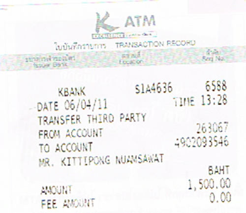 โอนแล้ววันนี้ 1500.11 บ. / 98/26 ม.6 ต.ขามใหญ่ อ.เมืองอุบลฯจ.อุบล 34000