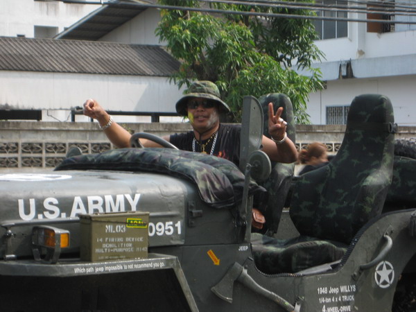 เลยขอเต๊ะท่าซะหน่อย แต่ใจไปกะขบวนจี๊ปโน้นแล้ว...