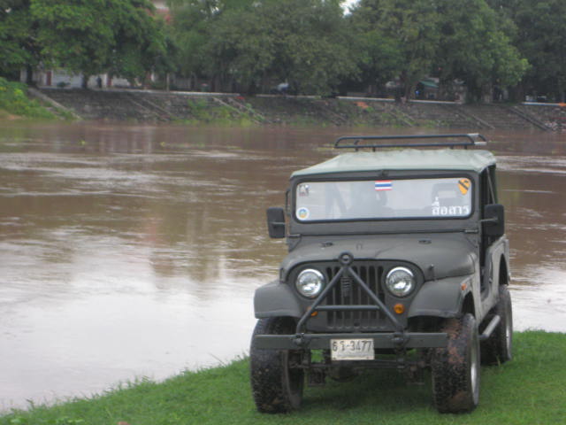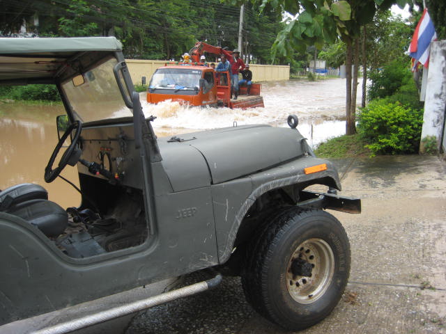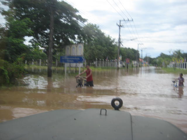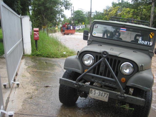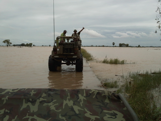 ฝัั่งเหนือแถววัดตาปะขาวหายคันกั้นน้ำพังเอาจี๊ปสื่อสารไปช่วยเหลือหน่อย