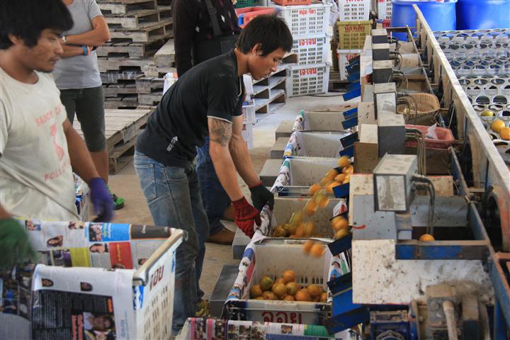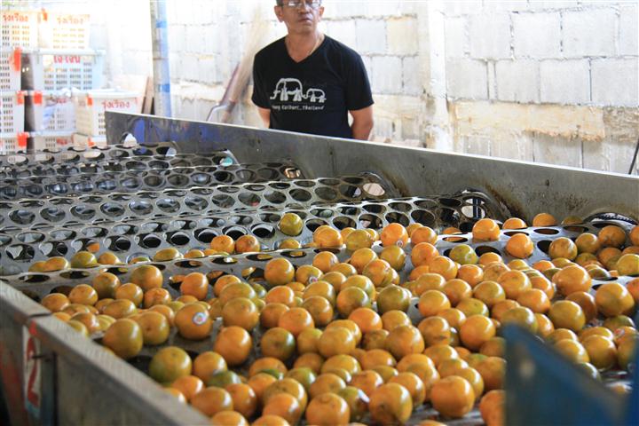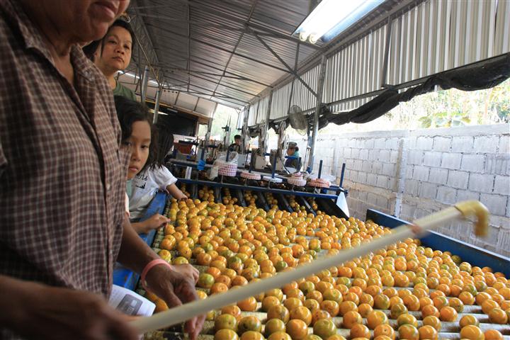 กระบวนการเริ่มจาก ลำเลียง ล้าง เป่าแห้ง แวกซ์ ติดกา แยกขนาด ชั่งน้ำหนัก จนถึงบรรจุลังเสร็จพร้อมขาย ใช้เวลา 2 ชั่วโมง......แต่เพิ่มมูลค่าให้กับ"น้องส้ม" ได้มากมาย