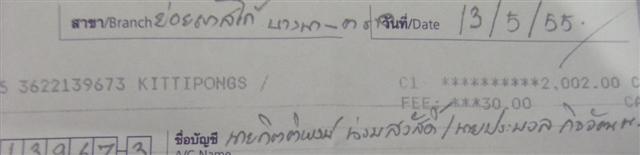 โอนแล้วครับ บิ๊กตาปี และ บังไพรบุรี ตาปี 55 ยอด 2000.69 บาท เมื่อวันนี้ตอนเช้าครับ