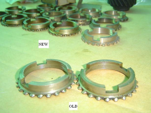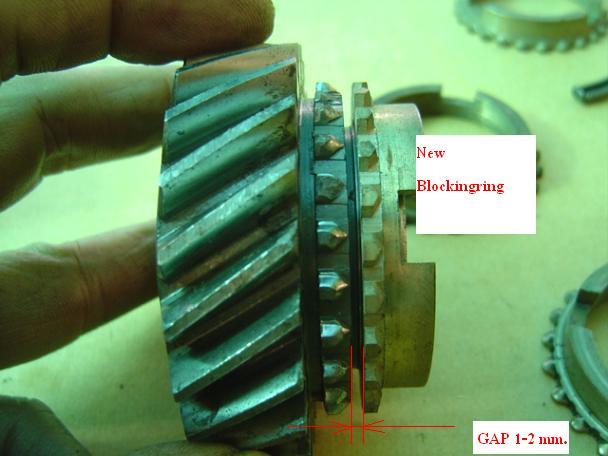 ตัวต่อไปเฟืองทองเหลือง( Blocking Ring )จะมีจำนวนฟันเท่ากับเฟืองเม็ดข้าวโพด เฟืองทองเหลืองมีความสำคัญมาก ในการเข้าเกียร์ ง่ายหรือยาก เจ้าตัวนี้มีหน้าที่ ปรับให้ความเร็วของเฟืองเกียร์ ให้ใกล้เคียงกัน เพื่อที่จะเข้าเกียร์ได้ง่ายและราบเรียบโดยด้านในของเฟืองทองเหลืองจะมีครีบเล็กๆหลายๆวงเรียงกันในแนววงกลม ถ้าเจ้าครีบนี้สึกหรอจนเอามือลูบดูแล้ว ลื่นไม่สากมือเลยควรเปลี่ยน ดังนั้นในการเปลี่ยนเฟืองตัวนี้ต้องเลือกกันหน่อยครับ