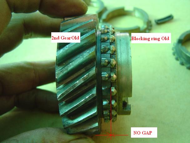 เฟืองเก่า ใช้ไปนานๆจะเป็นแบบนี้ครับ ช่องว่างระหว่างเฟืองเกียร์ 2 กับ เฟืองทองเหลืองมีน้อย หรือชิดกันเลย แสดงว่า ครีบด้านในสึกหรอจนหมดแล้ว ต้องเปลี่ยน
