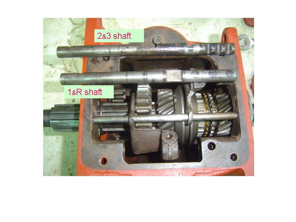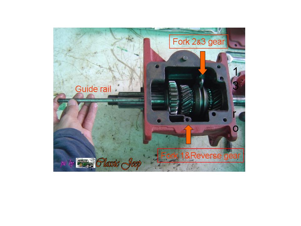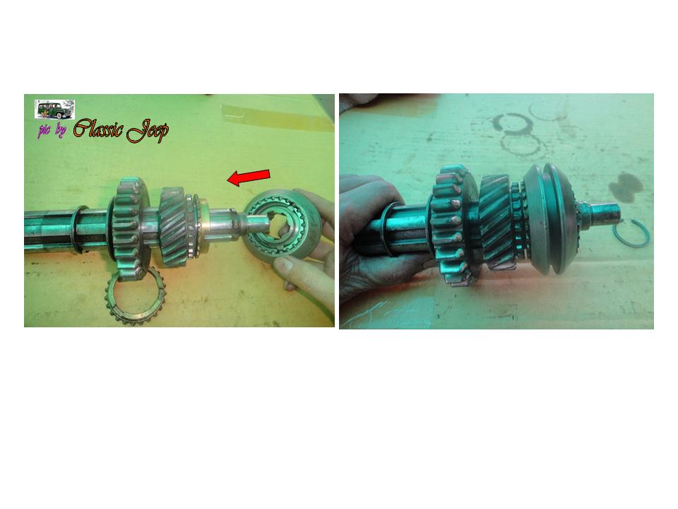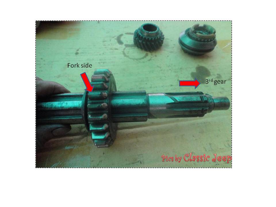 ประกอบเพลาก้ามปู เกียร์2และ3 โดยทาจารบีที่เพลาเล็กน้อย (เพลาก้ามปูทั้ง2อัน ยาวไม่เท่ากันดูให้ดีก่อนใส่ ของเกียร์2และ3 จะยาวกว่า )