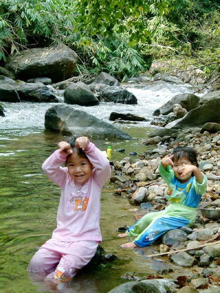 ห้วยที่กว้างจนน่ากลัวว่าจะติด ต้องค่อย ๆย่องเพราะใต้นำใส ๆเห็นหินใต้นำ ก้อนเบ้อเร้อ.. พวกกระหรี่ยงออกมายืนเชียร์ลุ้นว่าติด..ไม่ติด