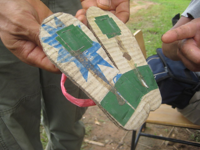 รองเท้า..ครับ...รองเท้า เด็กส่วนใหญ่จะไม่ได้ใส่รองเท้า บางรายต้องทำรองเท้ากระดาษ