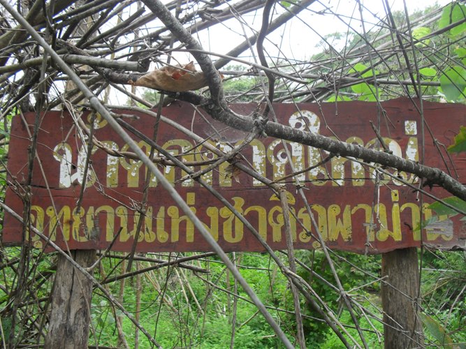 พอใก้ลถึง นายพรานโด่ง ชี้ให้ดูป้าย ว่า ถึงแล้ววววว....