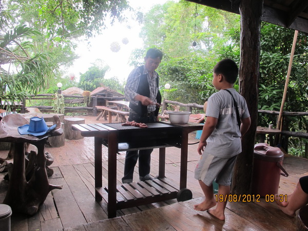 นั่งคุยกันตอนเช้า หลังงานจุดตะเกียงที่เขาใหญ่แล้ว จัดอีกแน่นอนงานคาวบอย เนื้อที่เจ็ดร้อยไร่มีที่ทดสอบรถสำหรับสายแข็งมากมาย ไร่แสงจันของพี่ลำพอง ส่วนพี่ลำพองบอกว่าเต็มทีเลยน้อง