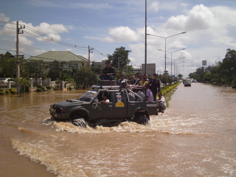 จิ๊ป ปัอม มะนาวตะเวณรับส่งประชาชนทั้งวันตลอดเส้นทางที่ถูกน้ำท่วม