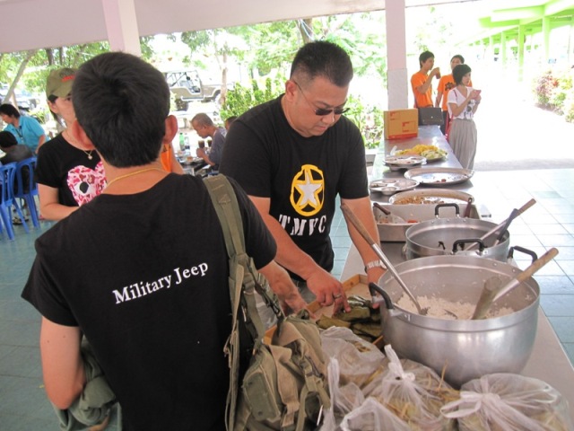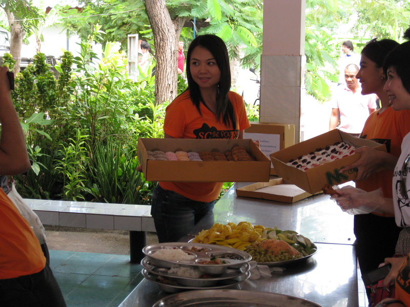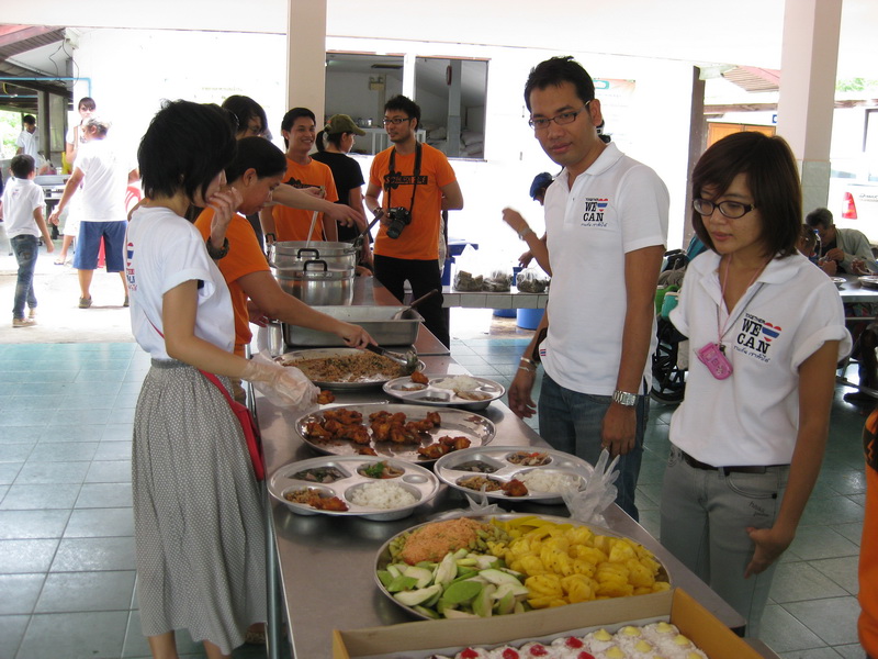 น้องๆ มาจากหลายที่ ประสานงานโดย พี่ต๋อง มาร่วมทำบุญกัน เริ่มตักอาหารแจกครับ
