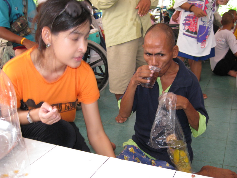 เรานำผู้ป่วยมาร่วมงานบางส่วน และบางส่วนเราจัดส่งอาหารถึงที่พักเลยครับ