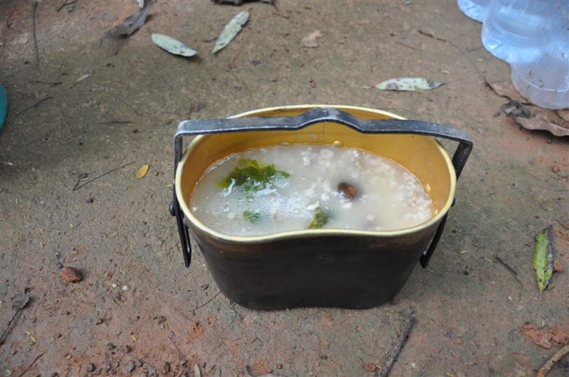 นี่ก็อาหารป่าสำเร็จรูป คือ ข้าวต้มมื้อเช้าที่หลือ อ.เบิ่มก็เลยเก็บเข้าป่าซะเลย ได้คนละคำ สองคำ