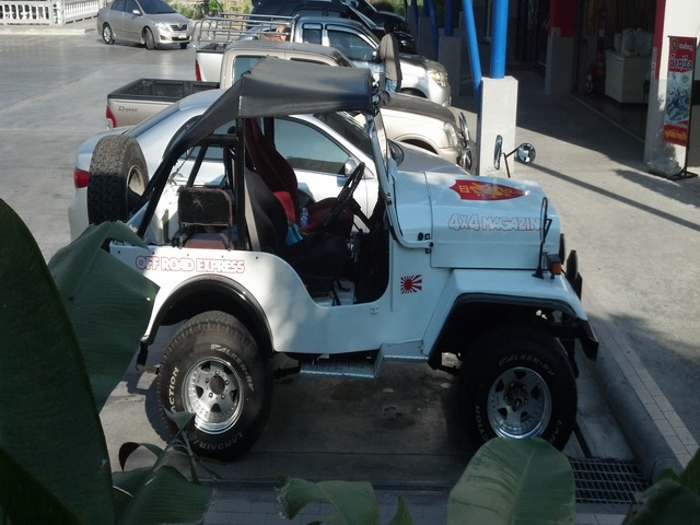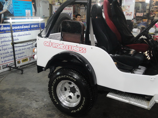 ด้านท้าย หา logo Jeep ไม่ได้เลยเอา สติ๊คเกอร์ ติดแทน หลังคาขอแบ่งผ้าใบแบบหนาที่ร้านเขาบอกว่าเย็บส่งหน่วยทหาร มาตัด เป้นสีเขียว