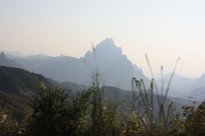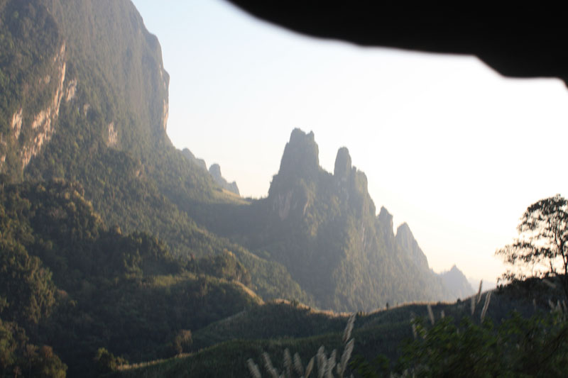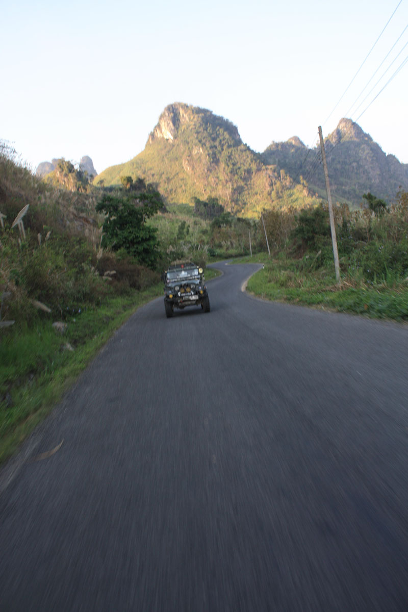 จากแยกภูคูณมา วังเวียง จะผ่านภูเขาหินปูนเทือกเขาสูงชัน