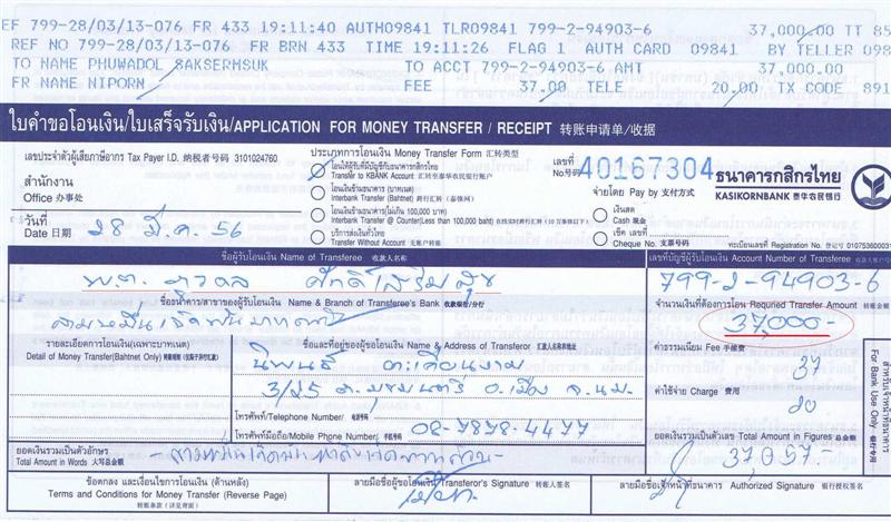 และได้โอนต่อเข้าบัญชีของผู้พันเบิ้มเรียบร้อยแล้ว ตามเอกสารแนบ