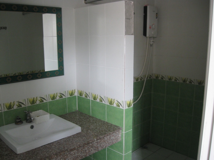 ภายในห้องน้ำมีเครื่องทำน้ำอุ่นอย่างดี น้ำไหลสะดวกครับ