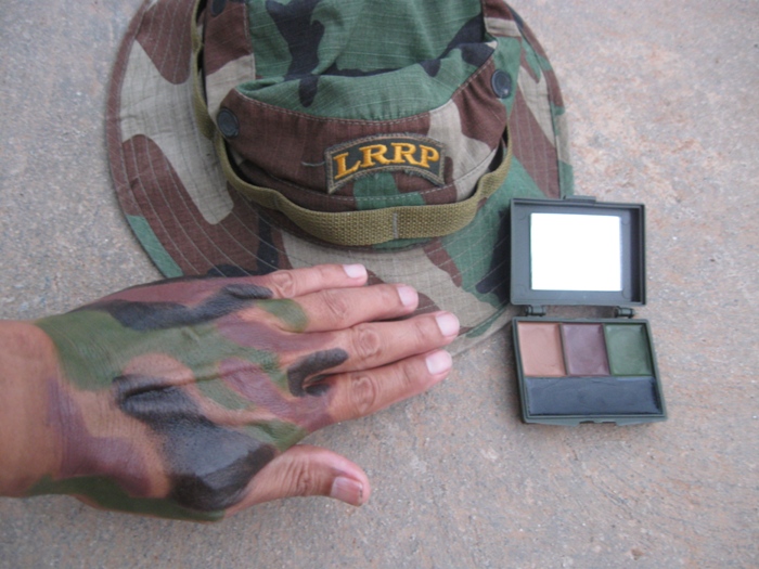 วันนี้ไปซื้อสีพรางมา เลยทดลองพรางดู ลักษณะเป็นเนื้อครีมแข็งๆ คล้ายลิสติกที่ทาปาก ทาให้เหมือนลายพรางของผ้า OK เลยครับ เวลาล้างใช้น้ำสบู่ล้างก็ออกแล้วครับ
