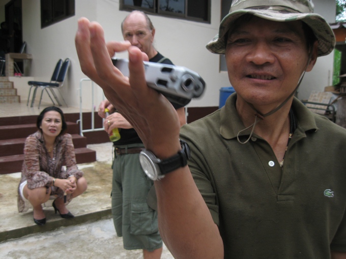 รองฯแดง ขอแสดงบ้าง แต่ไม่ประสบผลสำเร็จ เลยใช้วิธีดึงสองมือง่ายกว่าคร๊าบ....(ท่านผุ้การฯ สำเร็จหลักสูตรการยิงปืนสั้นแบบทำนองรบของ ศรภ.ทบ. มาจ้า)