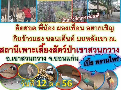 พึ่งว่างจากภาระกิจ เปิิล พรานไพร ขอเชิญกินข้าวแลง นอนเต็นท์ บนหลังภูเขาสวนกวาง ณ.สถานีเพาะเลี้ยงสัตว์ป่าเขาสวนกวาง อ,เขาสวนกวาง จ.ขอนแก่น ในวันเสาร์ที่ 12 ตุลาคม 2556 นี้
