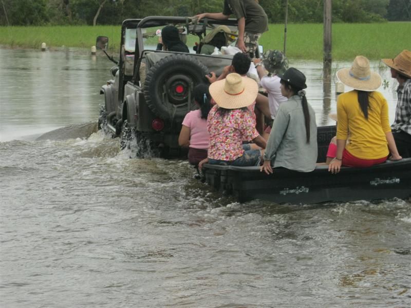 โดยทาง จี๊ปปราจีนฯ จะช่วยประสานเจ้าหน้าที่แต่ละตำบล แต่ละหมู่บ้านที่สามารถขนอาหาร และสิ่งของต่างๆเข้าช่วยเหลือนำไปแจกจ่ายทั้งทาง jeep และทางเรือ