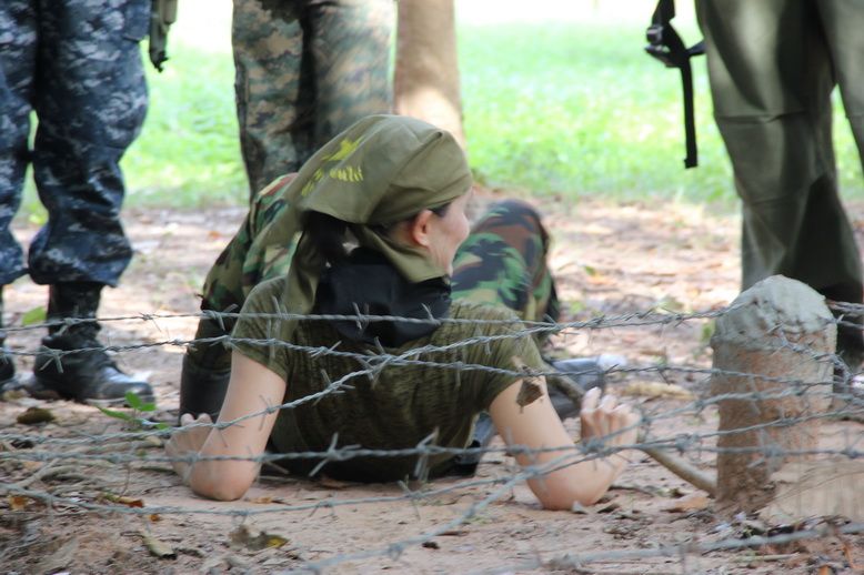 ผู้หมวดสาว เป็นคนที่ 2 ลอดลวดหนามทางบก โดยกลุ่มเมืองหลวงส่งมาปะลองฝีมือ