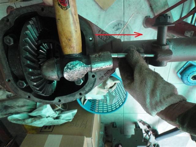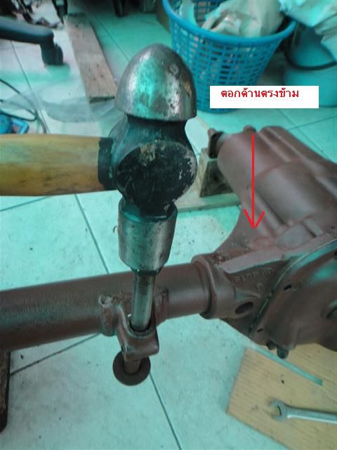 จากนั้นก็ตีเอาแกนเลี้ยวออก โดยหมุนคานตีจากด้านล่างออก