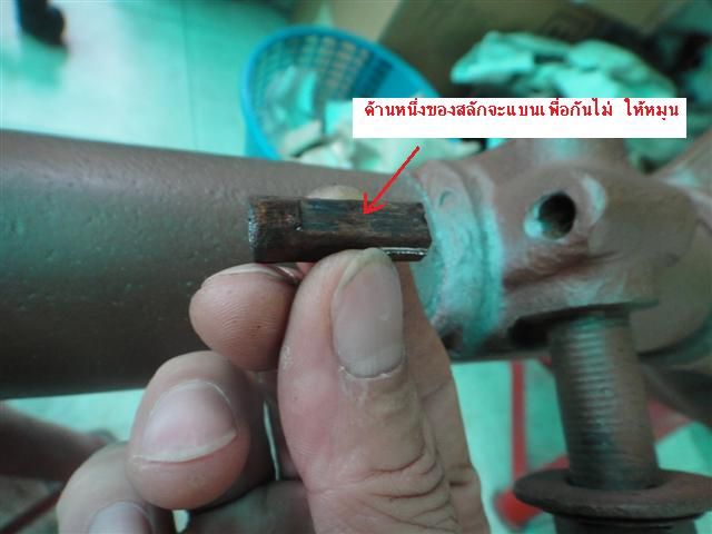 จะเห็นว่าที่แกนของสลัก มีบ่าเรียบๆ ทำไว้ไม่ให้แกนหมุน เพื่อกันการหลวมคลอน