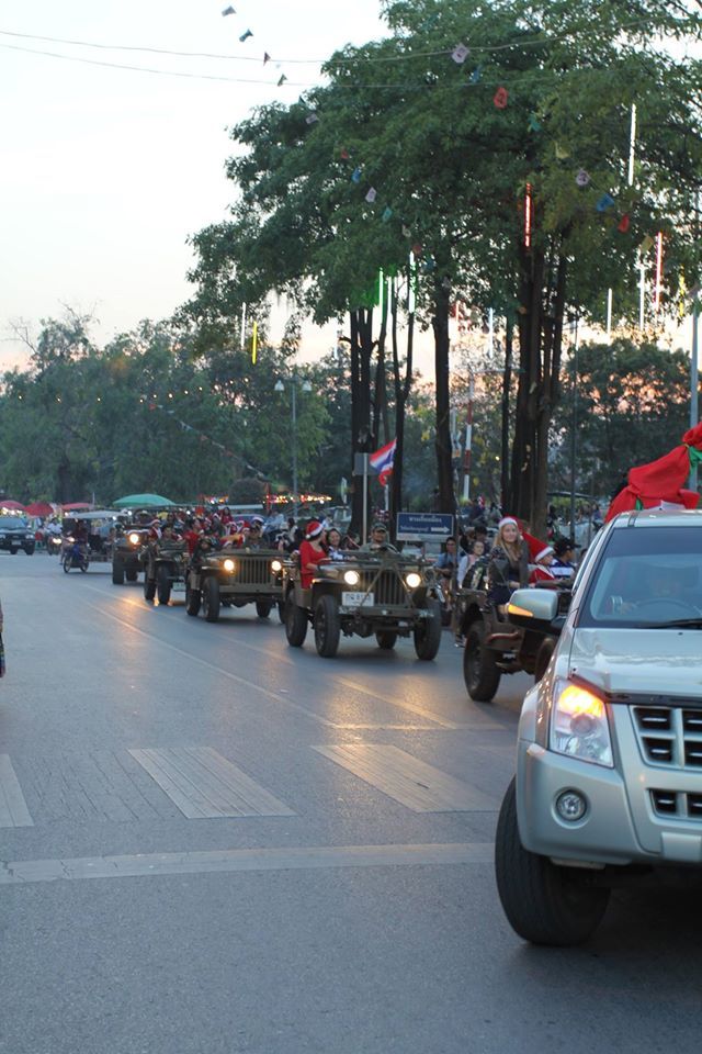 หากมีเสื้อผ้าสีขาวเข้ากับขบวนซานต้าก็จะดี รถจี๊ปเปิดประทุน หรือ หลังคา ก็ได้