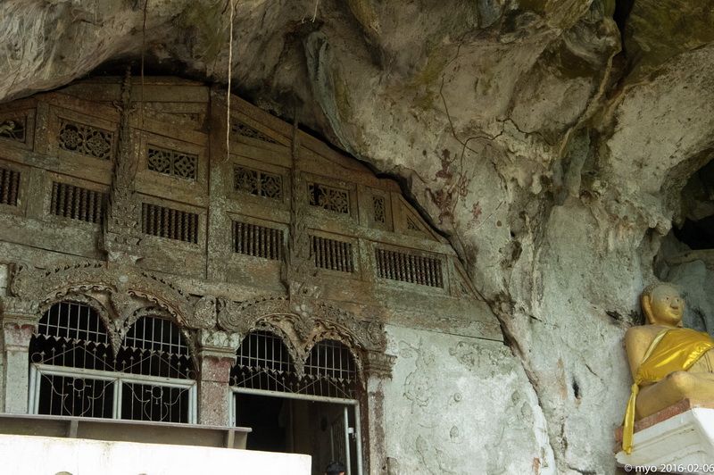 ปากถ้ำ ทำเป็นผนังกั้น ประดับด้วยไม้แกะสลักเก่าแก่ งดงามมาก