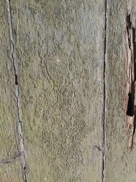 ตรงบานประตู มีร่องรอยภาพแกะสลัก