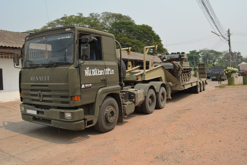 รถลากพ่วงชานต่ำรุ่นใหม่มีลาดสำหรับให้รถถังขึ้นลงทุกคัน
