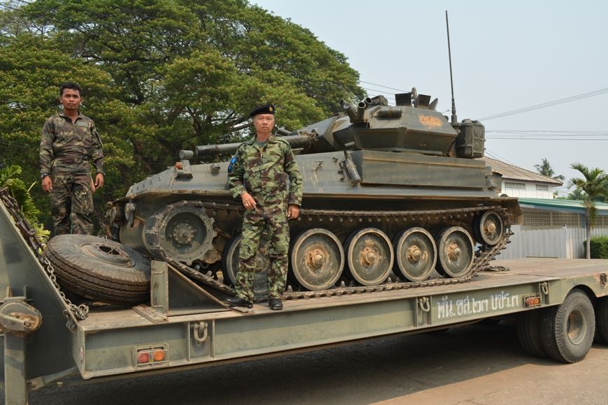 ตามคำสัญญาว่าจะขับรถถังให้ท่านชม ขั้นต้นจะนำรถถังลงจากรถลากพ่วงชานต่ำ
