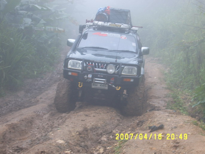 LN4x4 ใส่ยางดอกกอไก่ ในทริปที่ไปด้วยกันลงจากยอดเนิน1000ดินเข้าไปอัดในดอกยางไม่เกาะลายรื่นเกือบตกเขาโชคดีมีต้นไม้ใหญ่ขวางอยู่