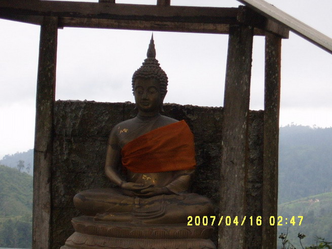 พระพุทธรูปที่เห็นในภาพนี้อยู่บนยอดเนิน1000ด้านหลังติดชายแดนพม่า เป๊นที่เคารพสักการะของคนในพื้นที่(ตชด)และผู้ไปเยี่อมเยืน ปัญจุบันศาลาที่ประดิษฐาณพระอยู่ในสภาพชํารุดเสียหายจากแรงลมไม่มีหลังคากันแดดกันฝน(ฝากบอกชมรมคนรักjeeภาค7หน้าจะจัดกิจกําไปบูระณะซอ่มแซม)