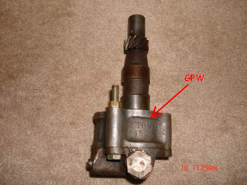 ตำแหน่งสัญญาลักษณ์ GPW ที่ปั๊มน้ำมันเครื่องของ Jeep Ford GPW