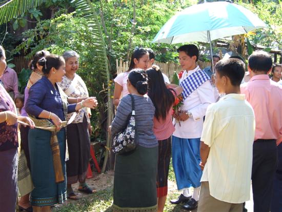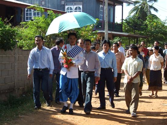 แห่กันมาแซวๆ สิพากันไปใสน๊อ...สิมาเป็นลูกเป็นเขยนี่แหล่ว...หลังการต่อรองเจราจาเสร็จก็จูงแขนเจ้าบ่าวเข้าสู่พิธี