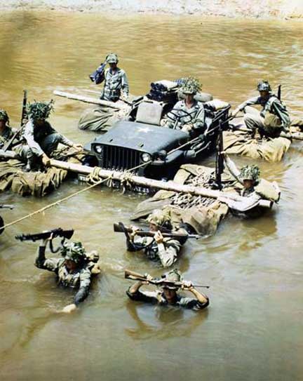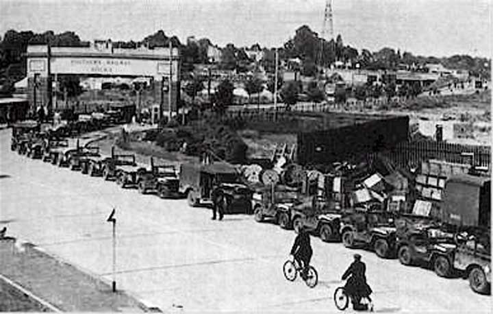 ที่วงกลมไว้น่าจะเป็น ดุ๊ก ยานยนต์สะเทินน้ำสะเทินบกขนาดใหญ่ แบบเดียวกับFord GPA ซึ่งมีขนาดเล็ก