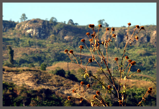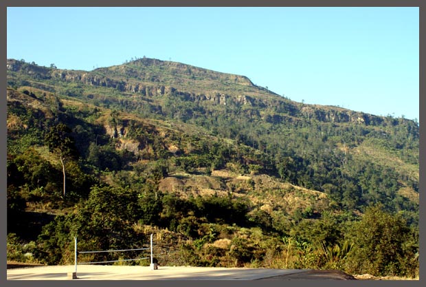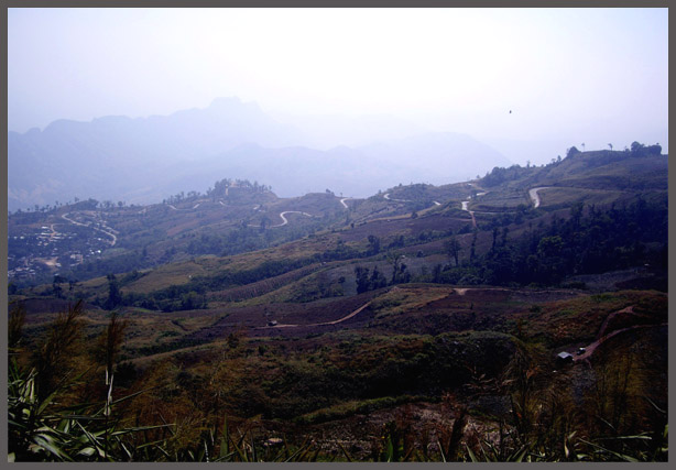 จากจุดนี้ ไปถึงยอดภู ผู้เฒ่าเจ้าของบ้านที่เราฝากรถไว้บอกว่ามีทางเดินที่ใช้กันมาตั้งแต่บรรพบุรุษ ใช้เวลาประมาณครึ่งวัน