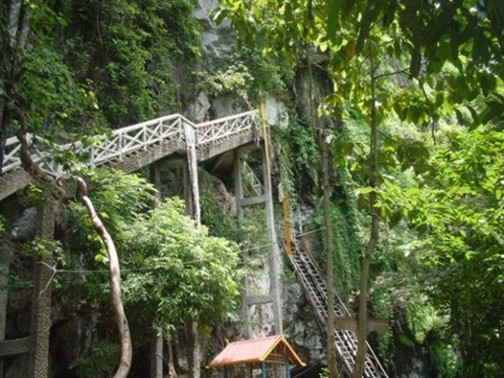 ว่ากันว่าเมื่อคาวก่อนมีลุงคนนืงตามค้างคาวเข้าไปในถ้ำ..พอตัดสินใจปีนตามเข้าไปดู..ก็เจีพระรูบอยู่มากมาย..ตอนใหม่ๆ..คนเหมาดูกันไม่ขาดสาย..แต่พอนานไปก็อย่างที่เห็นละครับโล่ง..ฝนตกน้ำถ้วมต้องใช้เรืออย่างเดียว..ส่วนที่เห็นเป็นหลังคาน่าจะเป็น ร้านค้าหลือ เชเว็น..หิหิ..