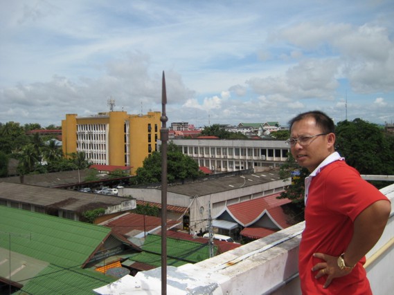 แล้วก็ขื้นไปดาดฟ้าที่สูงของ ตะหลาดเช้าเวียงจัน์ แล้วมองหาที่เราจะไปมุมใหนของโลก..เอี..ของ ลาวครับ..