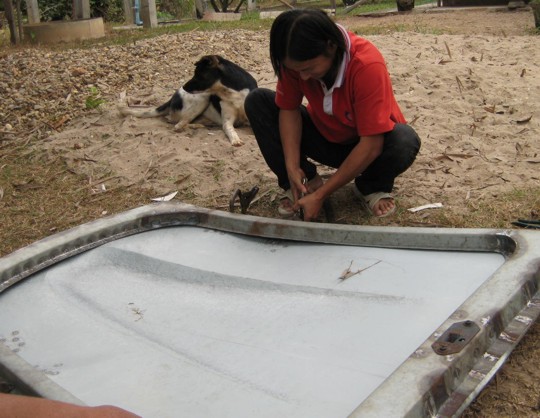 เคาะกันแบบดิบๆกลางป่าอย่างนี้ละครับ...ก็ที่อู่เขาไม่รับทำ ต้องได้ให้ช่างมาเคาะที่นี้ครับ...