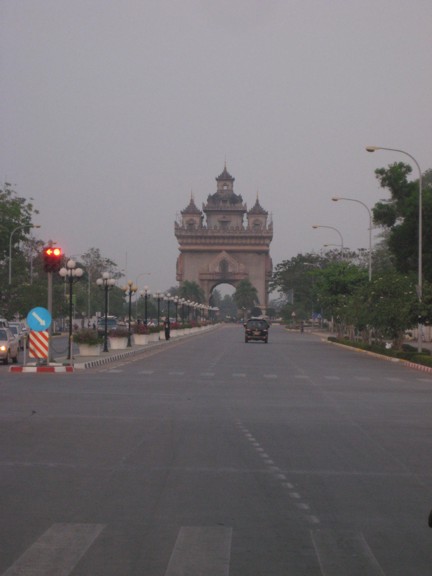 ส่วนกันชนหลังที่ป้ำเอ้ฟฟอร์ดต้องไปเอาที่คัดชีอีกตัวที่เก็บไว้อู่ของคุณเด็ด...ขับรถจิบกินลมกลางตัวเมืองครับ..ไครเหลียวมองเป็นต้องหนาว..เพาะผมร้อน..ขับรถที่ไม่มีหลังคาตากแดดก็เป็นอย่างนี้ละครับ..ที่เห็นแว็บๆตรงหน้าไกรๆนั้นก็เป็น ประตูไชกลางเมีองเวียงจัน...