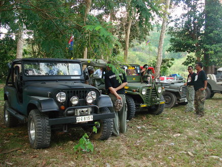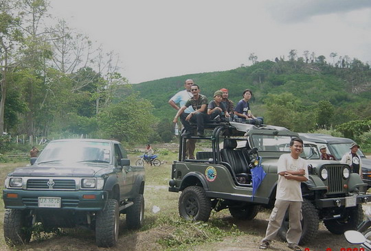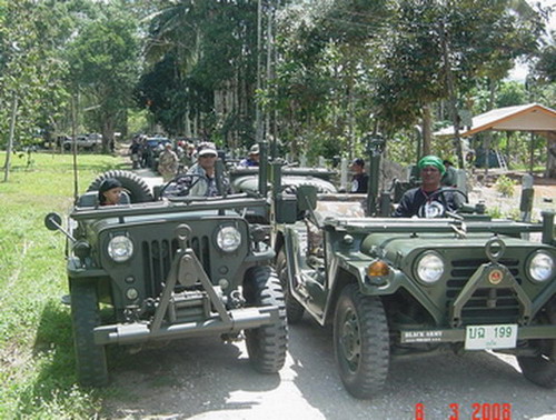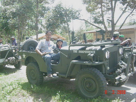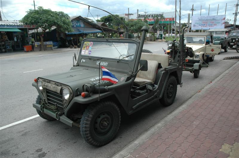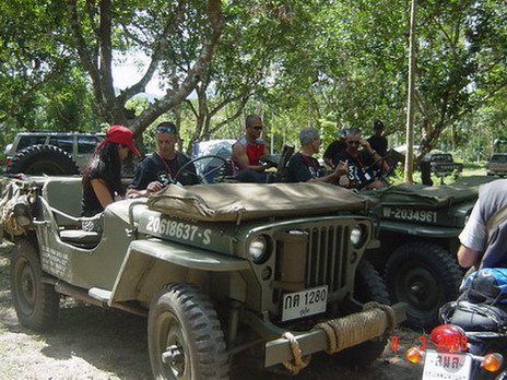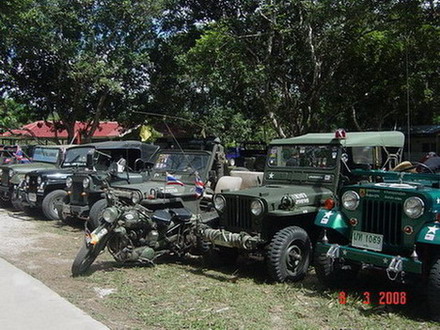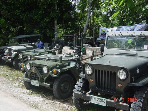 - วันนั้นมีเวลาได้ร่วมเหตุการณ์ประมาณ 3 ช.ม.ก็ต้องเดินทางกลับ แต่ก็ได้สัมผัสความสนุกสนานพอควร ทั้งได้เอารถไปเกาะขบวนแห่, เอารถลงน้ำไปตะกุยทรายเล่นในลำคลอง และที่ขาดไม่ได้ก็คือ ล่าภาพไว้ดูเล่นเกือบร้อยภาพ พอจะสังเกตุเห็นมั๊ยครับว่าGPของผมคือคันไหน นั่นไงครับ เจ้าCJ3B ปี 1960 "THE INDEPENDENCE" สวย ดุ หรู เริ่ด ไม่น้อยหน้าใคร(ในสายตาผม---ก็มันเป็นรถผมนี่ครับ)แต่วันนั้นเพื่อนโยเยนิดหน่อยแตะเบรคแล้วเลื้อยไปมาSIDE-BY-SIDEเหมือนงูหางกระดิ่งเลย ตอนนี้ส่งเข้าคลินิคไปแล้วครับ..O.K., SEE YOU AGAIN AT THE NEXT TRIP..............