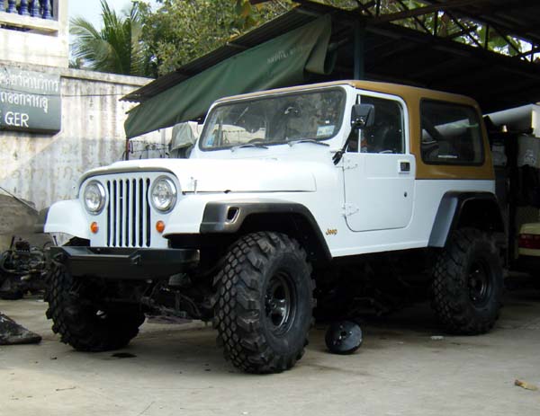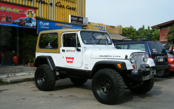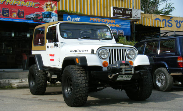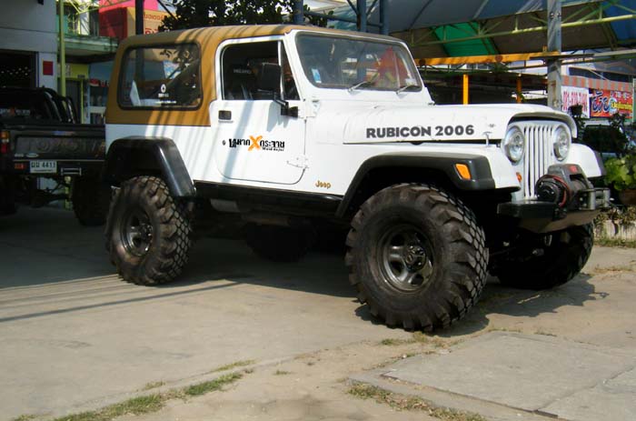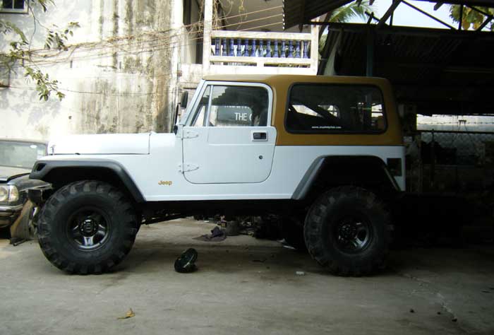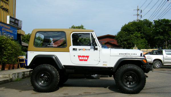 ด้านข้าง ยกสูงด้วยชุดยก แหนบ YJ ของ Rancho 4.5 นิ้ว โชคเปลี่ยนมาใช้Procomp ES 9000 ยาว 24.5 นิ้ว